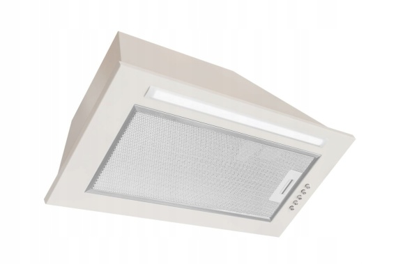 Okap nadaje się do całkowitej zabudowy szafkowej. Zabudowuje się go odpowiednio wykonaną szafką tak, że widocznym pozostaje jedynie dolny panel (od spodu).