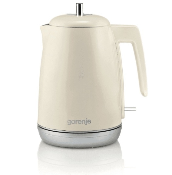 Czajnik elektryczny z kolekcji Retro. Pojemność 1.7l. Posiada obrotową podstawę, dzióbek zapobiegający rozlewaniu oraz ergonomiczny uchwyt. Czajnik wyposażony jest w wymienny filtr antywapienny.