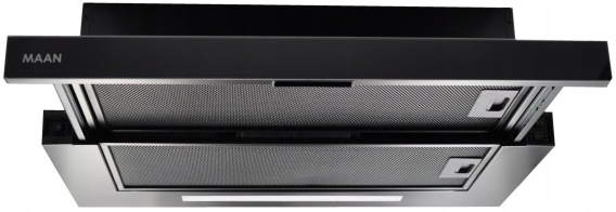 Okap kuchenny teleskopowy Maan Corona 60cm Czarny Szkło Cichy Podszafkowy