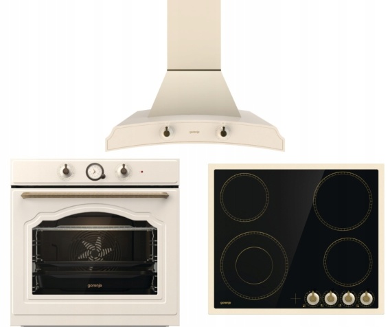 Zestaw RETRO GORENJE piekarnik BOS67372CLI + okap DK63MCLI + płyta ceramiczna EC642CLI